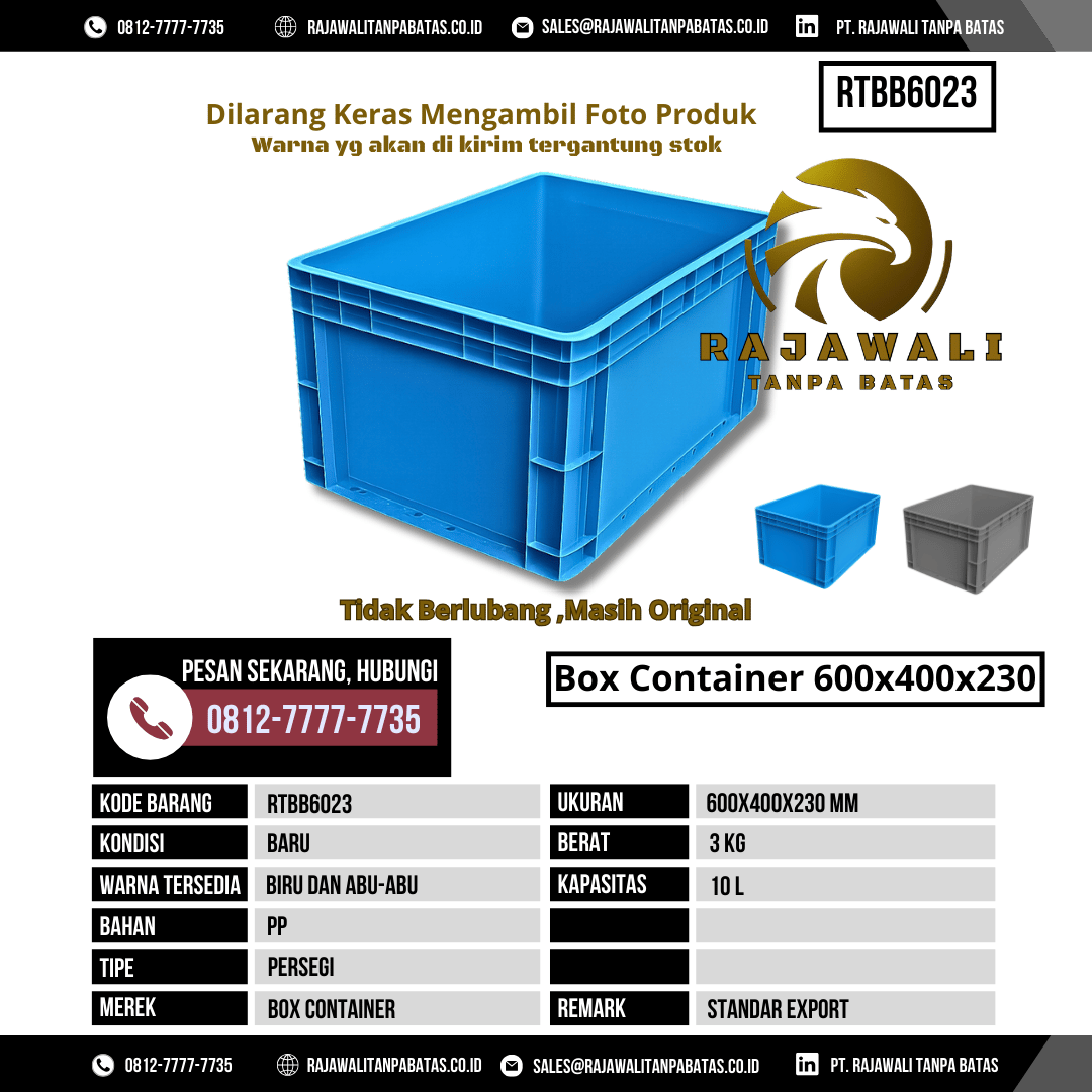 Untuk informasi harga, ketersediaan stok, dan pemesanan Box Container RTBB6023, silakan hubungi tim sales PT Rajawali Tanpa Batas sekarang juga: