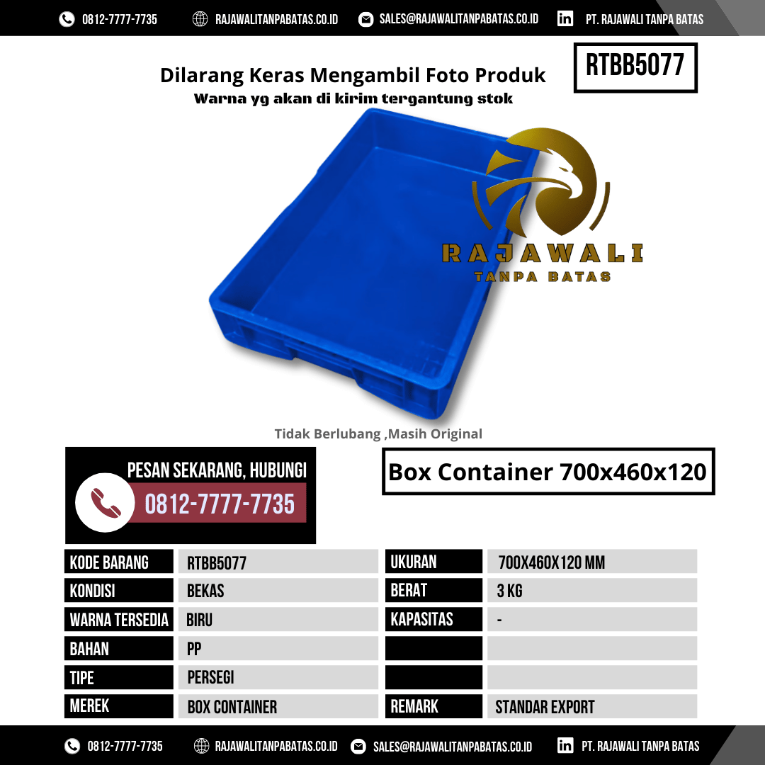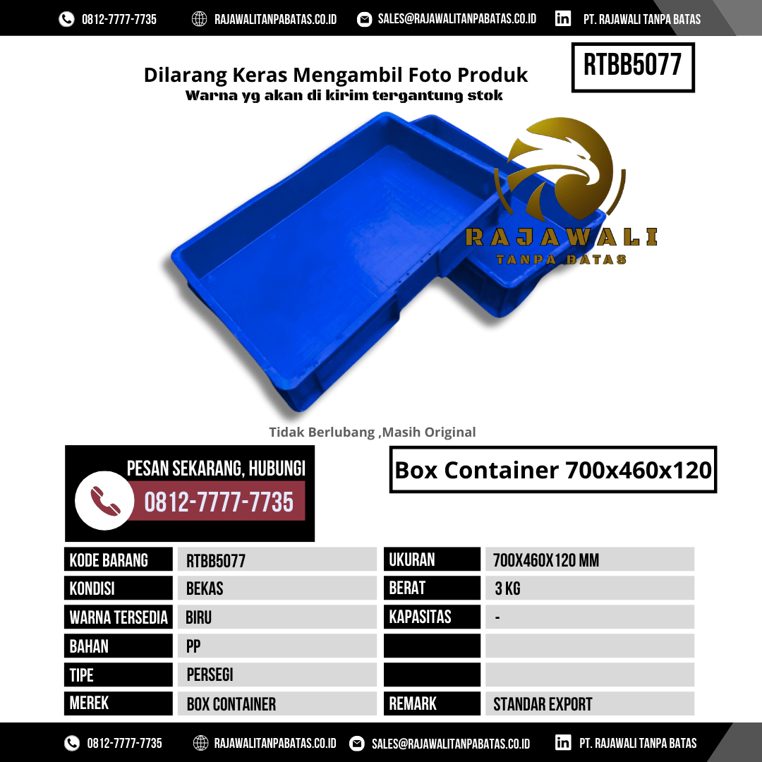 Untuk informasi harga, ketersediaan stok, dan pemesanan Box Container RTBB5077, silakan hubungi tim sales kami sekarang juga: