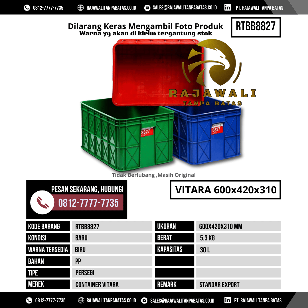 Untuk informasi harga, ketersediaan stok, maupun pemesanan Box Kontainer RTBB8827, silakan hubungi tim sales kami sekarang juga: