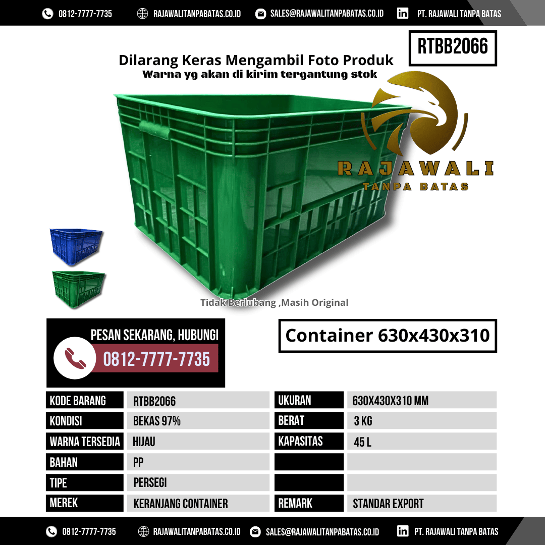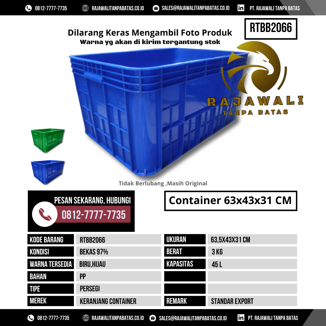 Untuk informasi harga, ketersediaan stok, dan pemesanan Box Kontainer RTBB2066, silakan hubungi tim sales kami sekarang juga: