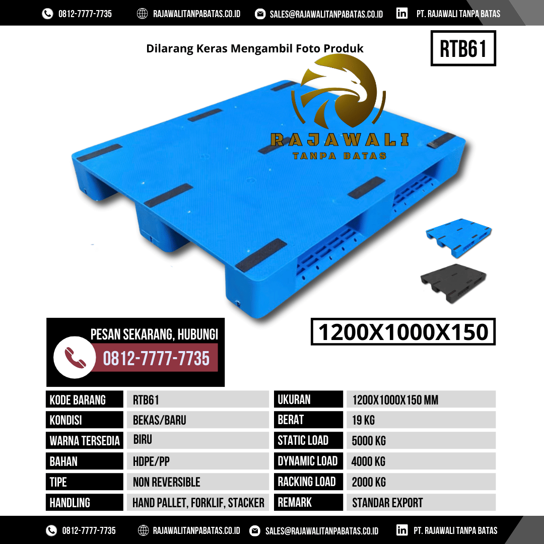 Pallet Plastik Bekas & Baru Ukuran 1200x1000x150 mm – RTB61 – Biru dari PT Rajawali Tanpa Batas