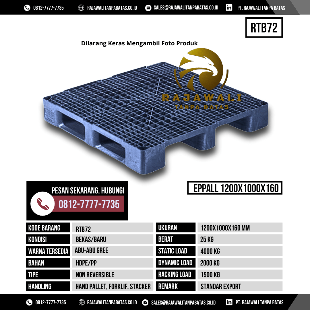 Dalam dunia logistik dan pergudangan modern, pemilihan pallet yang tepat merupakan faktor krusial untuk menjaga keamanan, efisiensi, dan kelancaran distribusi barang. Menjawab kebutuhan tersebut, PT Rajawali Tanpa Batas menghadirkan Pallet Plastik Bekas & Baru RTB72 – Biru, pallet berkualitas tinggi yang dirancang untuk memenuhi standar industri, mendukung operasional gudang, serta memastikan keamanan barang selama proses penyimpanan dan pengiriman.